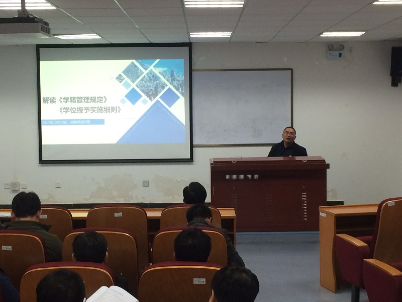 教务处副处长周文波、学生工作处副处长焦贺言、审计监察处陈平老师分别就《学位授予实施细则》、《学籍管理规定》、《学生违纪处分办法(试行)》、《学生申诉管理办法》等学院新修订的制度进行了详细解读。参会人员认真学习新制度,对相关规定有了更深入、更准确的了解,进一步增强了工作的责任感和使命感。