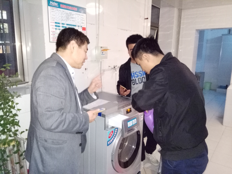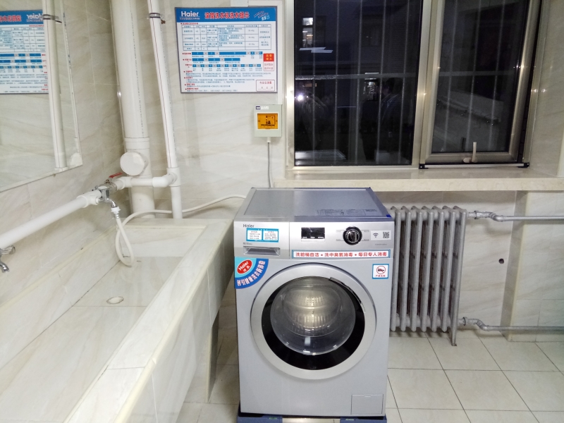 近日,学生公寓智能自助洗衣机投入使用。此次引进安装的洗衣机为全新海尔滚筒自助洗衣机,由第三方专业公司负责投资、维护。每栋公寓楼每层设置一台,学生可通过微信、支付宝或下载“海尔洗衣”APP自助进行选择洗衣机、预约使用、选择洗衣模式、付费等操作。