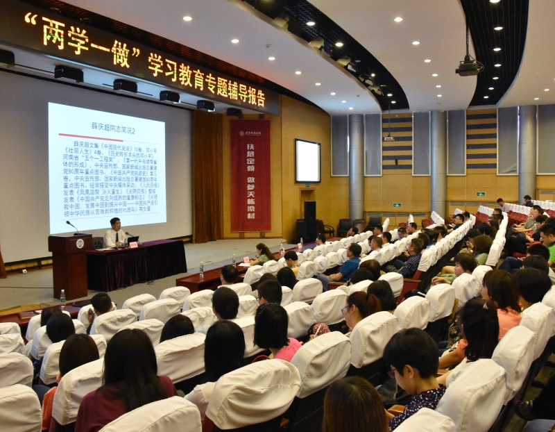 5月16日下午,中共中央党史研究室宣传教育局原副局长、中国党史学会常务理事薛庆超教授应邀到学院做“两学一做”学习教育辅导报告。学院中层以上干部、各党支部书记、全体教职工党员、学生党员代表参加报告会。