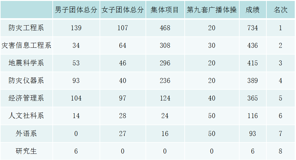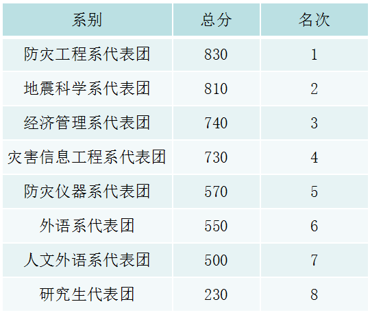 随着田径运动会的结束,学院2016年度体育赛事圆满结束,各系年度代表团团体总分如下: