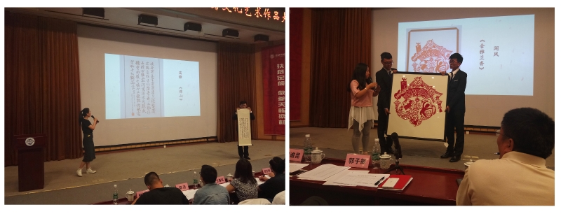 比赛开始前,后勤管理处副处长张帆致开幕辞,团委书记张振介绍了大赛组织情况和评分办法。之后,书法类、绘画类、设计类、手工类的参赛作者依次对作品进行展示,评委分别对参赛作品进行现场打分。比赛结束后,评审组组长侯逾昆分别宣读了本次大赛特别贡献奖及各类别参赛作品的评审结果,到场领导为获奖人员颁发荣誉证书。