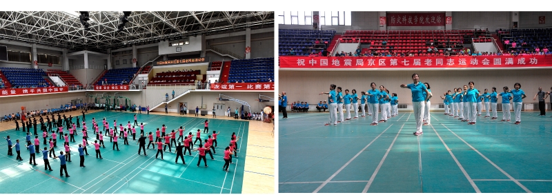 运动会在集体戏曲广播操汇演中拉开帷幕,老同志们娴熟的动作、扎实的功底、昂扬的气势,展现了老一辈地震人良好的精神面貌和运动活力,赢得了观众阵阵热烈掌声。由学院艺术团学生带来的大鼓表演和老同志表演的舞蹈也给开闭幕式增添了喜庆热烈的气氛。