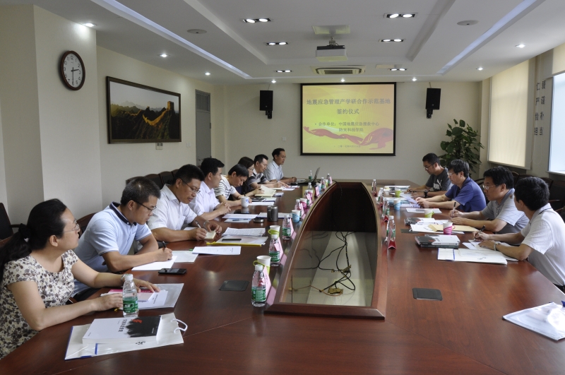 仪式前,双方进行了座谈交流。齐福荣指出,本次合作是贯彻落实习近平总书记关于防灾减灾救灾“三个转变”重要论述精神和中共中央、国务院《关于推进防灾减灾救灾体制机制改革的意见》及郑国光局长讲话精神的重要举措,对于推进学院应急管理专业建设与学科发展具有积极的促进作用。刘春平指出,双方共建合作基地对于人才培养、技术创新和行业服务具有重要意义,并提出了建设产学研合作示范基地的具体建议。双方本着“相互协作、互惠互利、资源共享、共同发展”的原则,就地震应急管理合作示范基地建设措施、教科研项目合作与资源共享等方面达成合作意向。