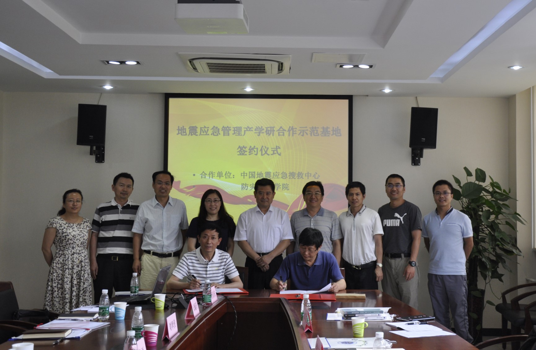 6月16日下午,学院与中国地震应急搜救中心签署地震应急管理产学研合作示范基地协议。学院党委书记齐福荣教授、中国地震应急搜救中心党委书记、副主任张宏卫高级工程师、学院副院长刘春平教授出席签约仪式。教务处副处长姜纪沂教授、中国地震应急搜救中心培训部主任贾群林研究员、经济管理系领导和相关教师参加签约仪式。经济管理系主任刘翠侠教授主持仪式。