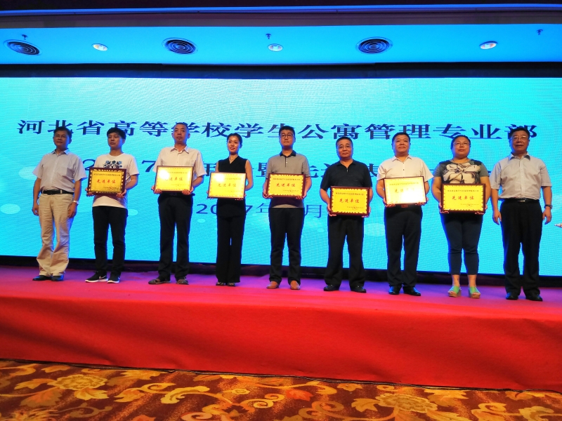 7月26日,河北省高等学校学生公寓管理专业部2017年年会暨先进表彰大会召开,经过河北省高等学校学生公寓管理专业部的综合评定,我院再次获得“河北省高校学生公寓管理服务工作先进单位”荣誉称号。
