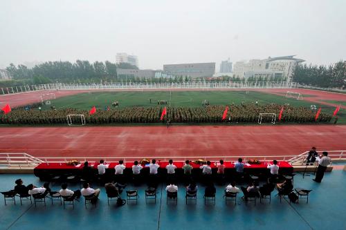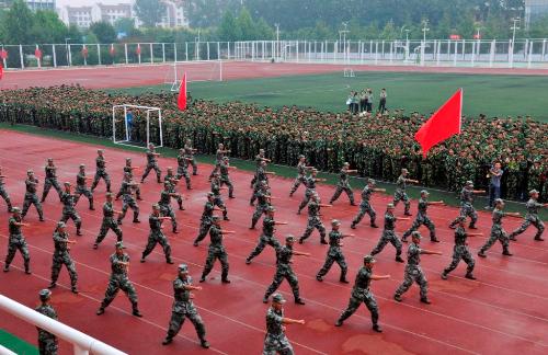 开学典礼结束后,举行了军训动员大会。学院军训工作领导小组副组长、学生工作处处长侯逾昆作军训动员报告。中国人民解放军炮兵指挥学院廊坊校区政治处副主任于飞同志代表军训官兵讲话。