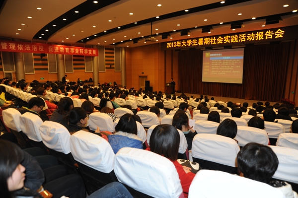 12月17日晚,学院2013年大学生暑期社会实践成果报告会在图书馆报告厅举行。学院副院长钟南才出席会议,相关职能部门负责人、各系党总支和团总支书记及来自各社会实践团队的队员和指导老师、各系学生代表参加了报告会。