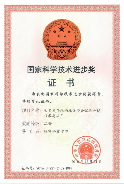 1月9日上午,2016年度国家科学技术奖励大会在人民大会堂隆重举行。党和国家领导人习近平、李克强等出席大会并为获奖代表颁奖。中国地震局工程力学研究所研究员王涛项目组研究成果“大型复杂结构在线混合试验关键技术与应用”荣获2016年度国家科学技术进步奖二等奖。学院防灾工程系主任郭迅教授为该项目的主要完成人之一,该项目完成单位为中国地震局工程力学研究所、清华大学、防灾科技学院、中国地震灾害防御中心。