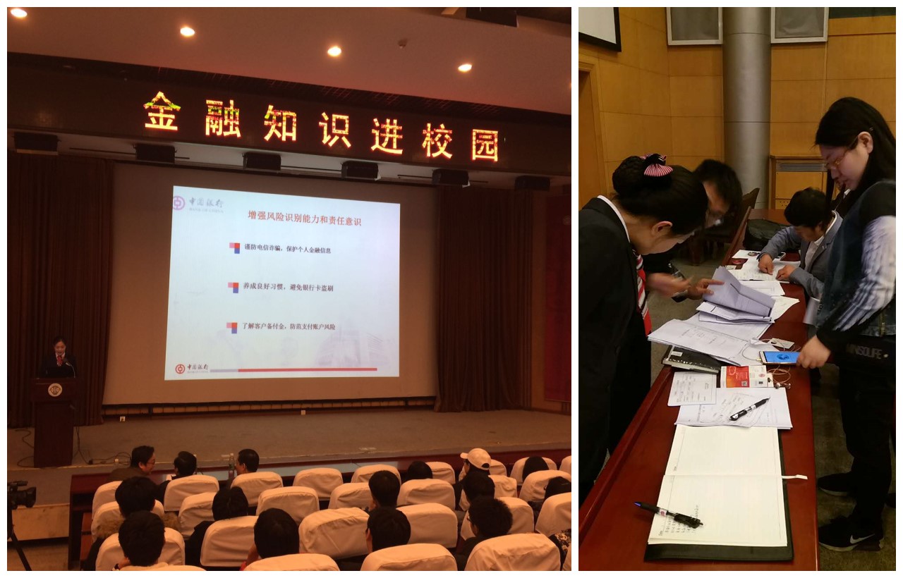 中国银行燕郊支行工作人员针对大学生金融消费特点,运用通俗易懂的语言,重点讲解了货币真伪鉴别、安全使用银行卡、维护个人信用状况、防范金融诈骗等方面的知识。