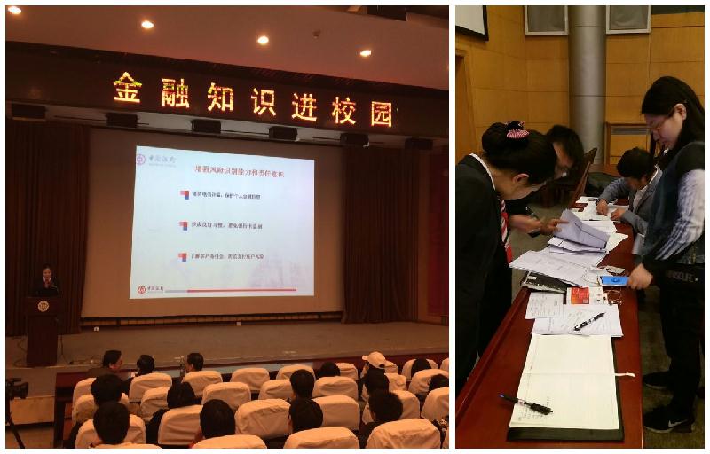 为积极应对校园网贷风险事件和校园金融诈骗乱象,提升在校学生金融风险防范意识和金融安全意识,3月23日下午,应学生工作处邀请,中国银行燕郊支行领导及员工5人,在图书馆报告厅开展了“金融知识进校园”宣讲活动,近300名生源地贷款和校园地贷款的学生参加此次活动。