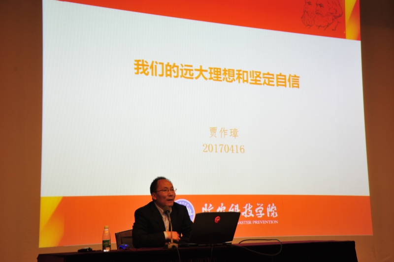 仪式结束后,思政部主任贾作璋教授为培训学员做题为《我们的远大理想和坚定自信》主题报告。贾作璋从马克思主义哲学、共产主义理想、个人精神追求和四个坚定自信等方面向大家讲述了马克思主义先哲和无产阶级革命先烈们的高尚情操和远大追求,回顾了中国共产党在带领中国人民走向伟大复兴道路上的艰苦卓绝斗争,展望了中国特色社会主义事业的光辉前景,鼓励青年学生树立远大理想,坚定自信,为中华民族伟大复兴贡献自己的力量。