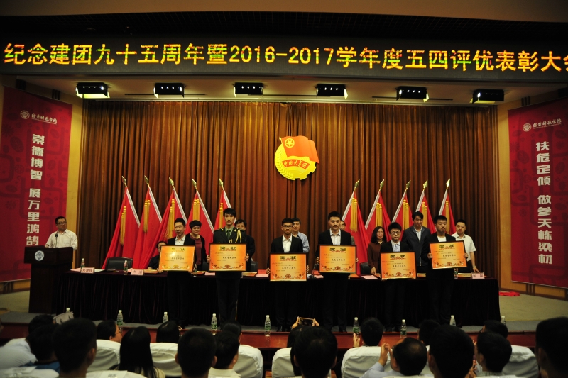 大会在昂扬的共产主义青年团团歌中拉开序幕,院团委书记张振宣读了《关于公布2016-2017学年度五四评优结果的通知》,与会领导为获奖集体和个人颁发荣誉证书。先进青年工作者、校园十佳青年和优秀共青团干部代表先后发言。
