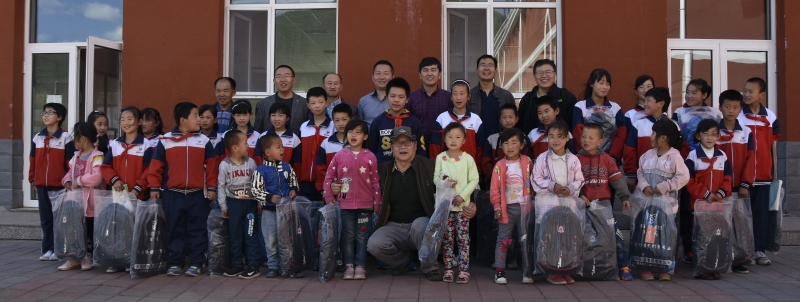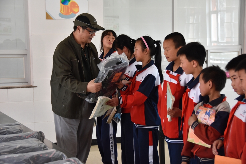 副院长迟宝明向化吉营小学杨树底下村学生赠送文具