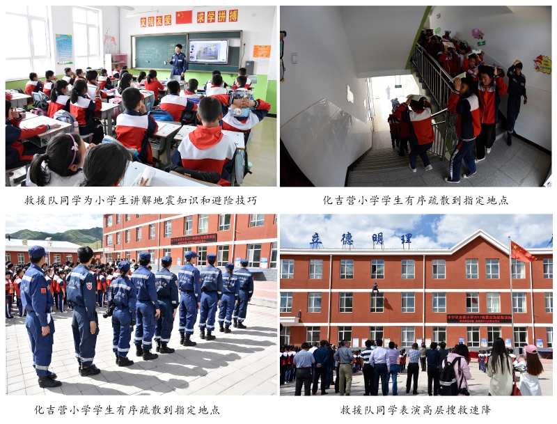 活动当日,承德市地震局局长钱绍福致欢迎词,对防灾科技学院领导、老师和同学来到承德市表示欢迎和感谢。之后,防灾工程系主任郭迅教授为化吉营小学师生做地震科普专题讲座,大学生志愿者地震灾害紧急救援队同学分别为12个班级的小学生进行地震知识和避险技巧讲解。随后,救援队同学组织全校近400名师生按照指令有序进行地震应急疏散。全体参演师生用时36秒快速、安全到达指定疏散位置。整个演练过程组织有序,达到了预期效果。