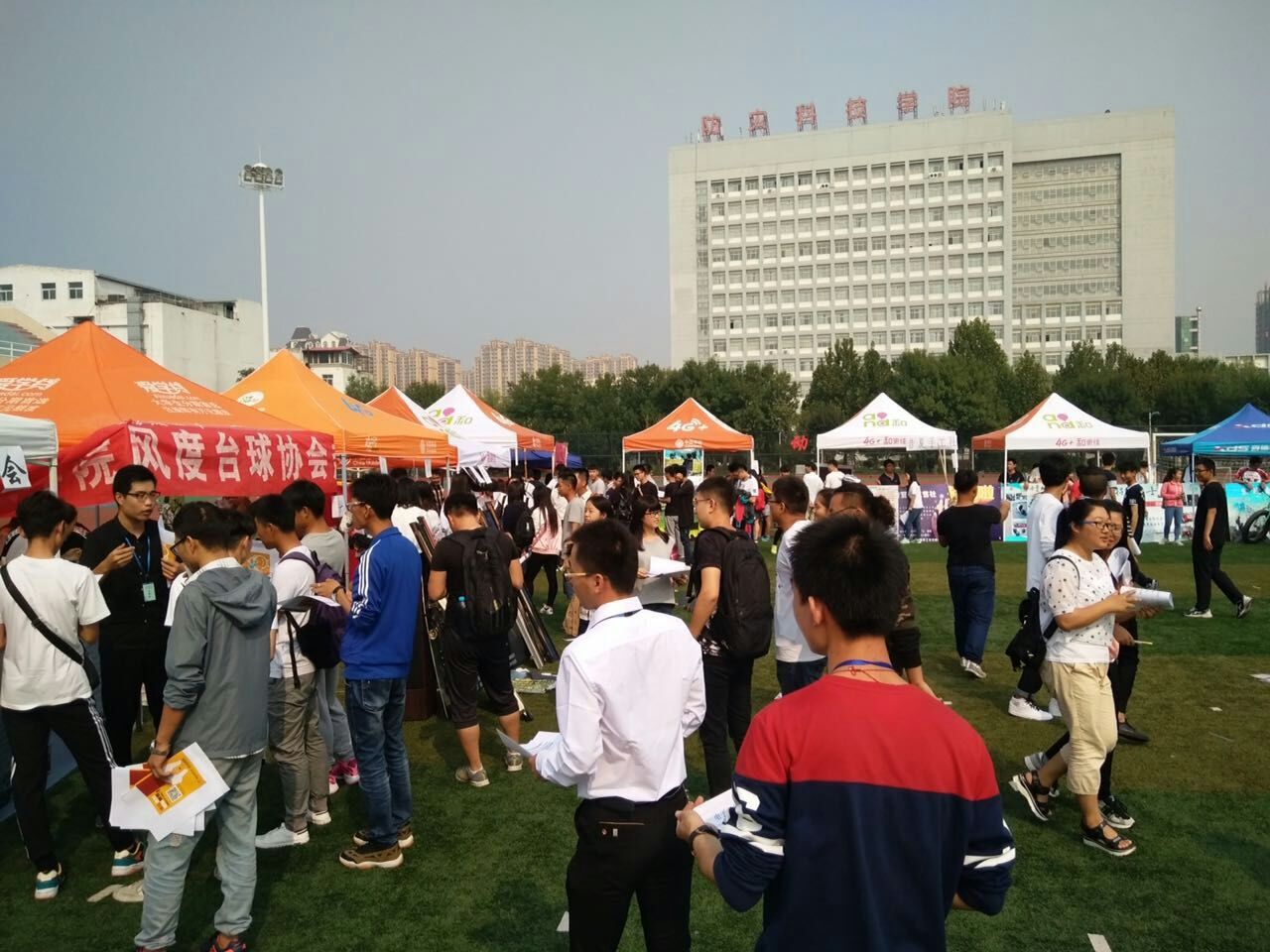 9月24日,学院体育场上彩旗飘飘、歌声悠扬、热闹非凡,由学院大学生社团联合会与60多个社团携手举办的2016年社团招新活动如期举行。