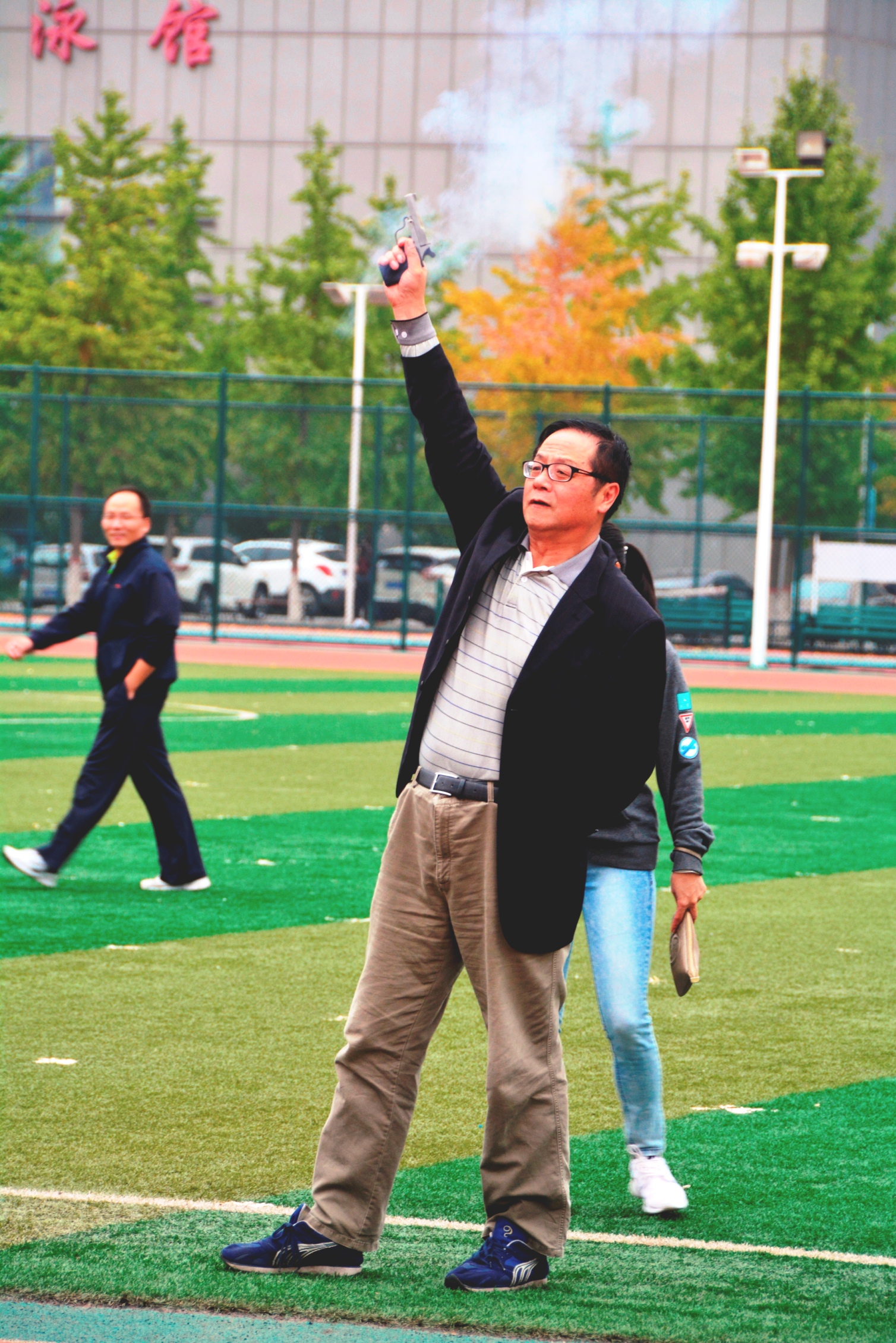 10月20日下午,学院第四届教职工健步走比赛在南校区举办。下午2:00,随着迟宝明副院长的一声鸣枪发令,比赛正式开始。参赛选手按照规定路线健步行走、勇往直前,展开了一场速度与激情的竞赛。