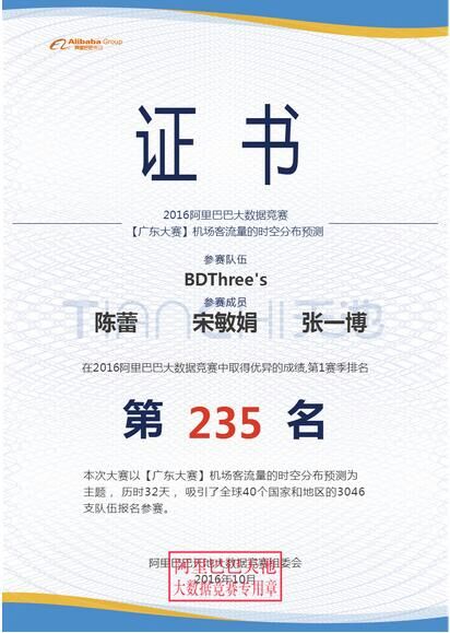 阿里天池杯大数据竞赛是国际知名的开放式大数据竞赛。每个赛季都会吸引众多国际知名高校的博士、硕士研究生参赛,竞争异常残酷。每个赛季阿里集团及外众多互联网公司都会投入数以百万计的奖金。竞赛取得的科研成果会被淘宝等知名公司实际应用,优秀的参赛学生有机会被阿里集团直接录用。