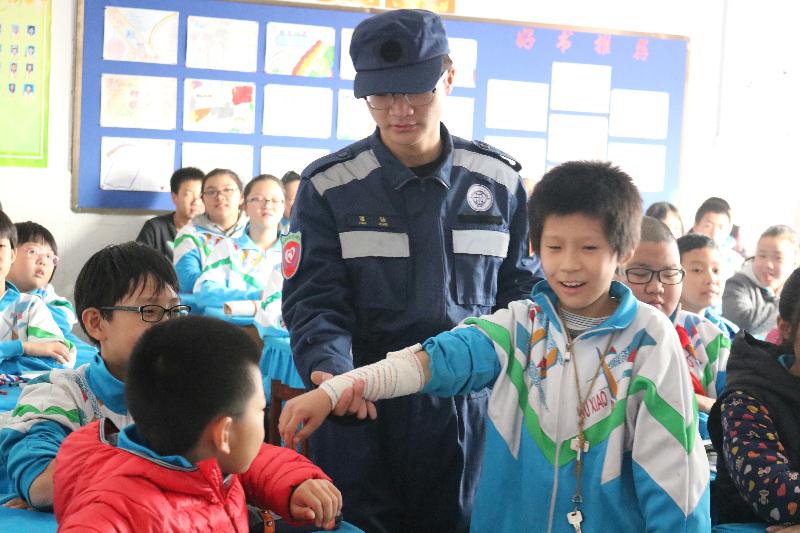 11月3日下午,我院大学生救援队、青年志愿者协会的60余名学生应邀到三河市第六小学开展消防疏散演练活动。