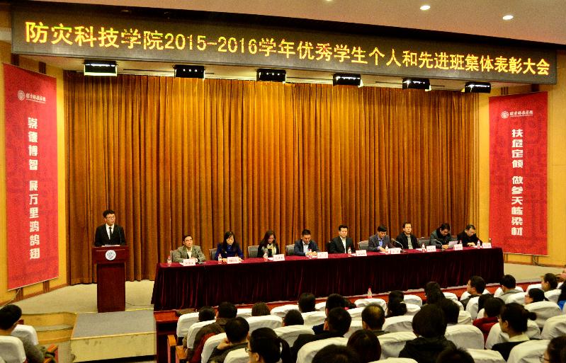 会上,防灾工程系总支书记刘文堂宣读了《关于表彰2015—2016学年优秀学生个人和先进班集体的决定》、《关于国家奖学金等奖项获奖情况的通报》。在主席台就坐的领导向优秀学生个人代表和先进集体代表颁发了荣誉证书和奖状。