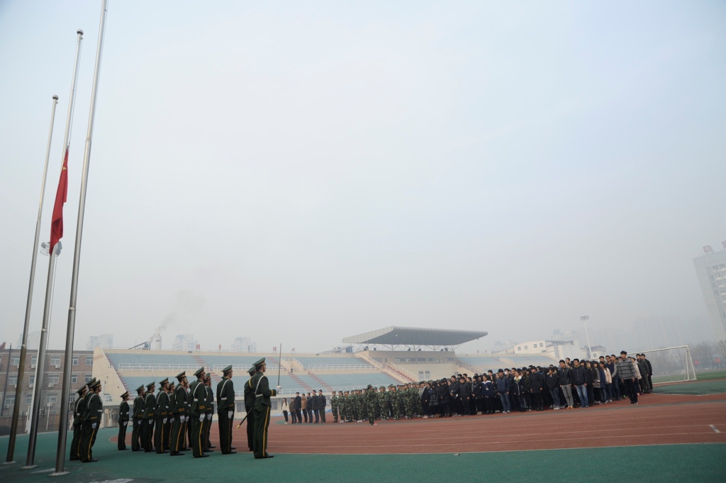 上午10时,大学生国旗护卫队和各学生组织的300余名学生在体育场集合,进行了庄严的降半旗默哀仪式,沉痛悼念南京大屠杀死难同胞。来自经管系的陆可音同学发表了题为“勿忘国耻、振兴中华”的国旗下的演讲,号召全体同学努力学习,积极践行社会主义核心价值观,为实现中国梦而努力奋斗。