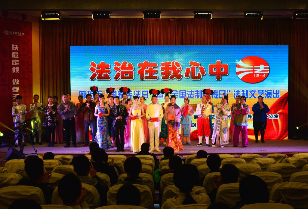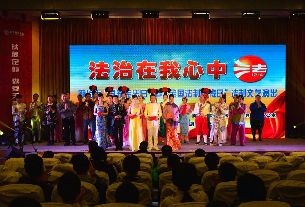 12月17日下午,学院图书馆报告厅华灯璀璨、热闹非凡,以“弘扬宪法精神,推动创新、协调、绿色、开放、共享发展”为主题的法治宣传文艺汇演在此盛情上演,节目别开生面、精彩纷呈,为师生送上了一顿丰盛的法治文化大餐。