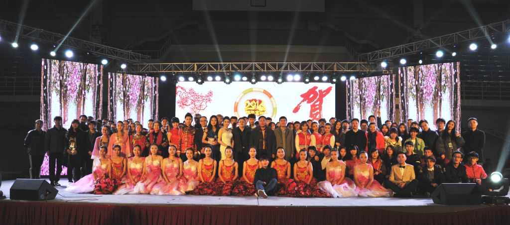 晚会中,校园歌手大赛中选拔的优秀歌手倾情献唱。教师瑜伽协会的老师们带来的《舞韵瑜伽》展示了教师们健康向上的精神风貌。由北京歌舞剧院的相声表演艺术家带来的相声《节日颂》表达了对全院师生美好的祝愿,其诙谐的语言给观众带来了欢乐。值此毛泽东同志诞辰122周年之际,学生们以情景剧《青春变奏曲》的方式带领观众穿越时空,感受不同时代青年勃发向上的青春活力,致敬伟大的领袖,抒发当代青年爱国、担当的情怀。《中华一家亲》向大家展示了中华民族优秀传统文化。《四手连弹》表演形式诙谐幽默,演奏者配合默契,赢得大家阵阵掌声。舞蹈《竹林深处》、《惊鸿舞》与《FM2016》舞台美轮美奂、充满活力,洋溢着青春的气息。星光大道周冠军“小蛮丫头”组合带来的《俏花旦》、《说唱脸谱》韵味十足、别具一格,表达了当代青年对中华传统文化的热爱。北京歌舞剧院杂技演员带来的《力与美》,其精湛的表演深深吸引了大家的眼球,赢得了阵阵掌声,再次将晚会推入高潮。全总文工团青年歌唱演员贾少林带给大家一首激情满怀的《西部放歌》,并与我院学生王靖雯合唱《举杯吧朋友》为晚会完美谢幕。