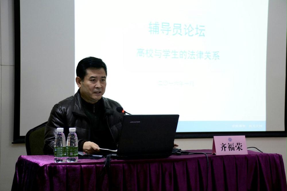 本次论坛以“高校与学生的法律关系”为主题。辅导员唐圣华、申世园、赵佳宾、郑丽佳分别做专题发言。他们从“司法实践的案例”、“大学生情绪管理”、“学生伤害事故处理办法中的责任解读”、“权利、义务、权力”等不同方面,通过典型案例,并结合工作实际,深入分析了高校与学生的法律关系。