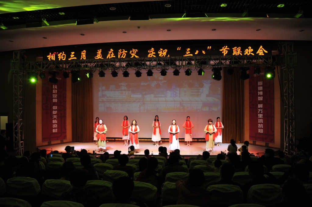3月11日晚,“相约三月 美在防灾”三八节联欢会在报告厅举行。学院党委副书记李军及有关职能部门领导与全院教职工400多人共同庆祝“三八”国际劳动妇女节。