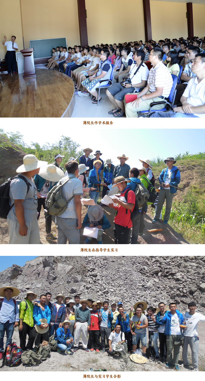 在兴城尖山实习路线,薄院长为地震科学系2013级张衡地学班、防灾工程系勘查技术与工程专业1350211班指导实测地层剖面实习,现场指导学生布设测线、地层分层、取样、描述、记录、绘图等环节的实习内容,并结合实习路线上典型地质现象,向学生讲解如何将地学知识贯穿并延伸到相应专业技术工作中,强调野外地质实习对从事地学相关专业技术工作的重要性。薄院长还在基地学术报告厅为实习师生作了题为《地震灾害及其防御》的学术报告,在报告中详细解读了目前所了解的地球、地震孕育和发生过程、地震灾害及其成因、地震灾害工程防御等四个方面的科学问题,强调了夯实地质学理论基础和掌握系统的野外地质工作方法对于从事防震减灾相关工作的重要性,使同学们增长了见识、开阔了思路和视野。薄院长以其深厚的理论基础、渊博的专业知识、丰富的科研工作经历和深入浅出的讲解吸引着在场的每一位师生。