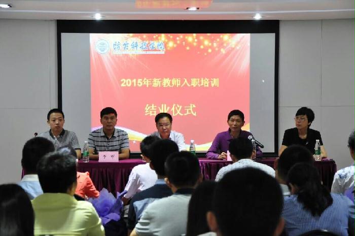 金秋时节,恰逢第三十一个教师节,9月10日上午,学院2015年新教师入职培训结业仪式在明德楼132会议室举行,学院院长薄景山教授、副院长刘春平教授、党委副书记李军教授出席仪式。各系部领导、全体新教师、教学导师及相关职能部门负责人参加了会议。会议由教师教学发展中心副主任尹景玉主持。