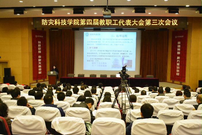11月5日,学院召开第四届教职工代表大会第三次会议专题审议《防灾科技学院章程(草案)》。大会由学院党委副书记李军主持。