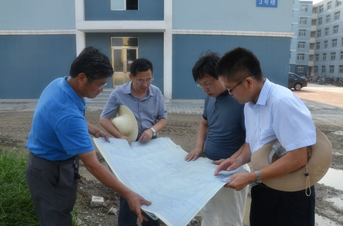 7月31日、8月4日、8月5日,学院党委书记齐福荣、院长薄景山、副院长石峰在基建处处长李巨文及基建处工作人员的陪同下,分别到南北校区正在施工的几个工程现场进行检查指导。