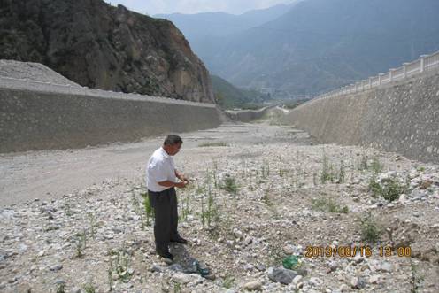(薄院长在甘肃舟曲特大泥石流灾害现场采集岩石标本)