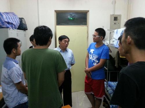 9月6日晚,学院副院长钟南才带领学生工作处处长侯逾昆、副处长谢长旺深入新生宿舍看望新生。