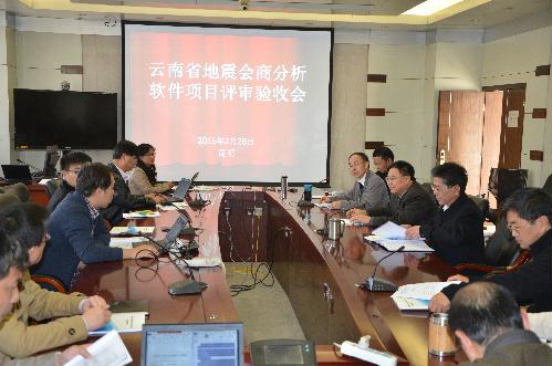 2015年2月26日,由防灾科技学院承担的《云南省地震会商分析软件》项目在云南省昆明市通过了由云南省地震局组织的专家评审验收。评审专家组组长由云南省地震局李永强研究员担任,专家组成员有防灾科技学院院长薄景山教授、云南省地震局、云南省地震局地震应急保障中心、云南省地震局计财处、云南省地震监测中心和云南省地震信息中心等部门的专家。项目负责人灾害信息工程系主任丰继林教授和本项目组成员参加了评审会。