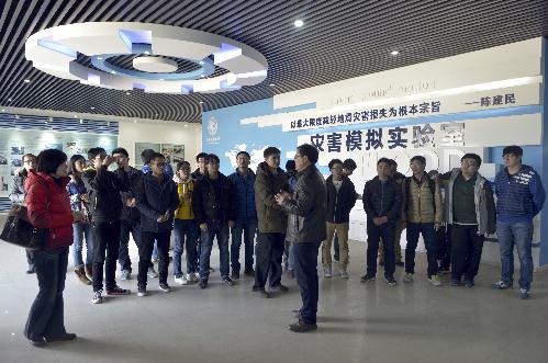 考察期间,学院党委书记齐福荣教授陪同董东林教授一行参观思玄苑,介绍了学院的文化建设和办学特色。董东林教授一行还参观了防灾工程系振动台实验室、地下结构与工程地质试验场、灾害模拟实验室,防灾工程系主任郭迅教授全程陪同讲解。