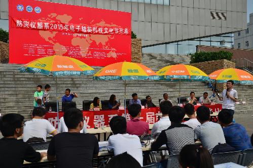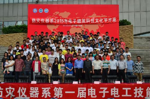2015年4月30日下午,防灾仪器系2015年电子精英科技文化节开幕式暨第一届电子电工技能比赛在学院体育馆前成功举办。学院党委副书记李军教授莅临现场指导,学生工作处、教务处、招生就业处等领导应邀出席,防灾仪器系领导、教研室主任、教师及120多名同学参加开幕式和比赛活动。
