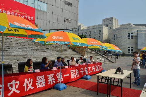 开幕式上,九位优秀电子青年代表分别就科技创新、创业发展、学科竞赛、演讲辩论、公益、文艺体育等方面激情演讲,分享了自己参与的过程与取得的收获,展现了仪器系青年学生积极进取、昂扬向上的精神风貌。学生会科技部和电子协会现场展示了天上飞的、地上跑的、水里游的优秀电子作品,如智能捡网球车、四轴飞行器、遥控飞机、机器鱼、智能灭火小车等,现场气氛十分热烈。爱心维修团队的同学们倾情服务,现场为广大师生维修13件小家电,把专业学习应用于志愿服务,向社会传递爱与正能量。