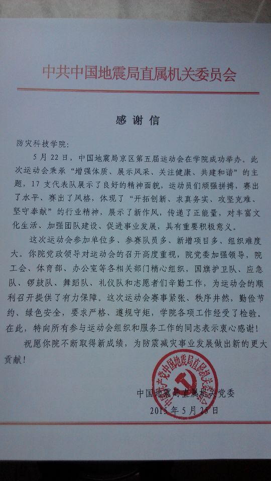 学院承办中国地震局京区第五届职工运动会工作获得肯定