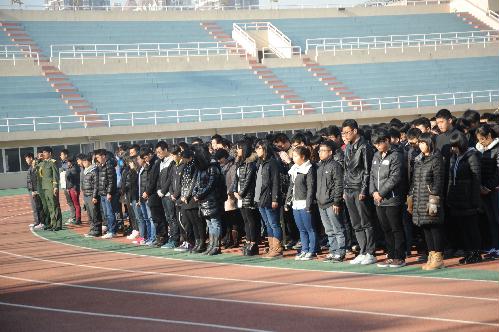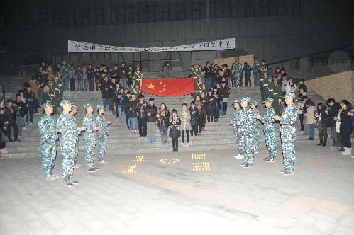 上午,300余名青年学生在体育场集中收听收看了国家公祭仪式,并举行了下半旗默哀仪式。中午,同学们自发书写祭奠条幅,并举行“铭记历史、不忘国耻”条幅签名活动。晚上,200余名学生在体育馆前举行烛光祭奠仪式,用360支白色蜡烛组成了“12·13”的字样,为在战争中失去生命的普通民众和献出生命的烈士们默哀致敬。