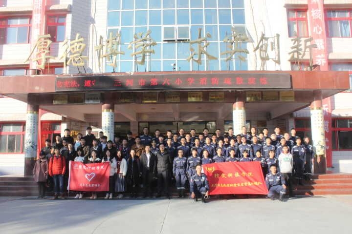 11月16日下午,我校大学生救援队、院青协70余名志愿者应邀到三河市第六小学开展消防疏散演练活动。