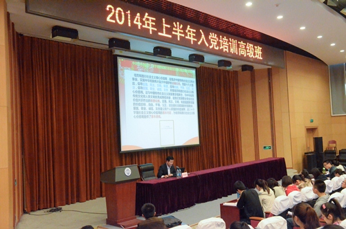 4月17日,学院党委书记齐福荣教授以“培育和践行社会主义核心价值观”为题,为2014年上半年党的发展对象培训班(入党培训高级班)的学员上了一堂精彩生动的党课。