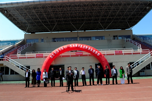 (学生在具有紧急避险功能的操场集合)