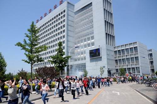 2014年5月12日是我国第六个防灾减灾日。为强化学院办学特色,提高师生防灾减灾意识,当天上午,南校区的3千多名师生开展地震应急疏散演练。本次演练模拟上课时间突发6.0级破坏性地震,师生进行紧急疏散。