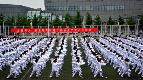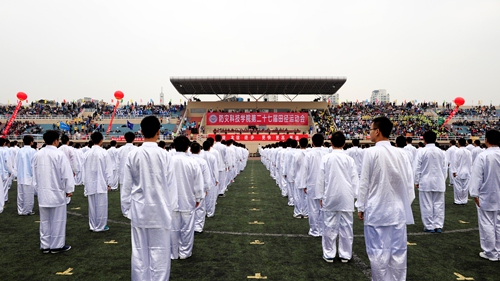 开幕式上,国旗队、管乐队、刀旗队、裁判队、各系代表队、研究生队和教工代表队迈着矫健的步伐依次走过主席台,展现出学院师生健康向上、积极奋进的良好精神风貌。开幕式上,学生还表演了大型太极拳表演。