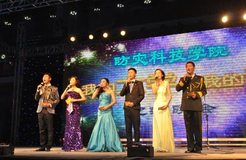 9月13日晚,由党委宣传部、党委学生工作部、院团委以及大学生艺术活动指导中心联合主办的“我的大学 我的梦”迎新晚会在防灾科技学院体育馆举行。学院副院长钟南才,副院长刘春平,副院长迟宝明,副院长石峰亲临晚会现场与2012级新生、全体军训教官和部分在校学生共2300余人一起观看了演出。
