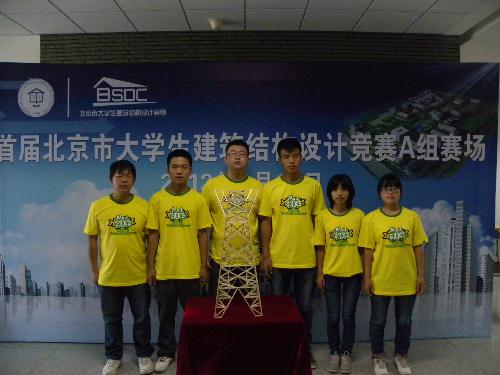 2012年9月15日,首届北京市大学生建筑结构设计大赛决赛在北京建筑工程学院大兴校区开战。我校防灾工程系学生由李巧燕、朱绪平老师带队,与北京市各大高校围绕着比赛的各个奖项展开了激烈的争夺。来自北京市建筑设计研究院、中国电子工程设计院以及北京14所高校的专家评委主要从建筑设计、结构设计、建筑结构模型以及总体造价分析四个方面分别进行考察。 最终,我校两个代表队分获A组(输电塔模型)三等奖和B组(结构方向)二等奖。