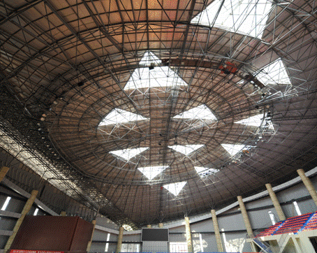 学院芦山地震现场应急工作组在震害调查中发现,位于极震区的芦山县城有两处大跨空间钢网架结构在地震中遭受不同程度的破坏,一处是刚刚落成的芦山体育馆,一处是新建的芦山中学食堂。4·20芦山地震之后,这两栋钢网架结构在主要支座处出现如下震害: