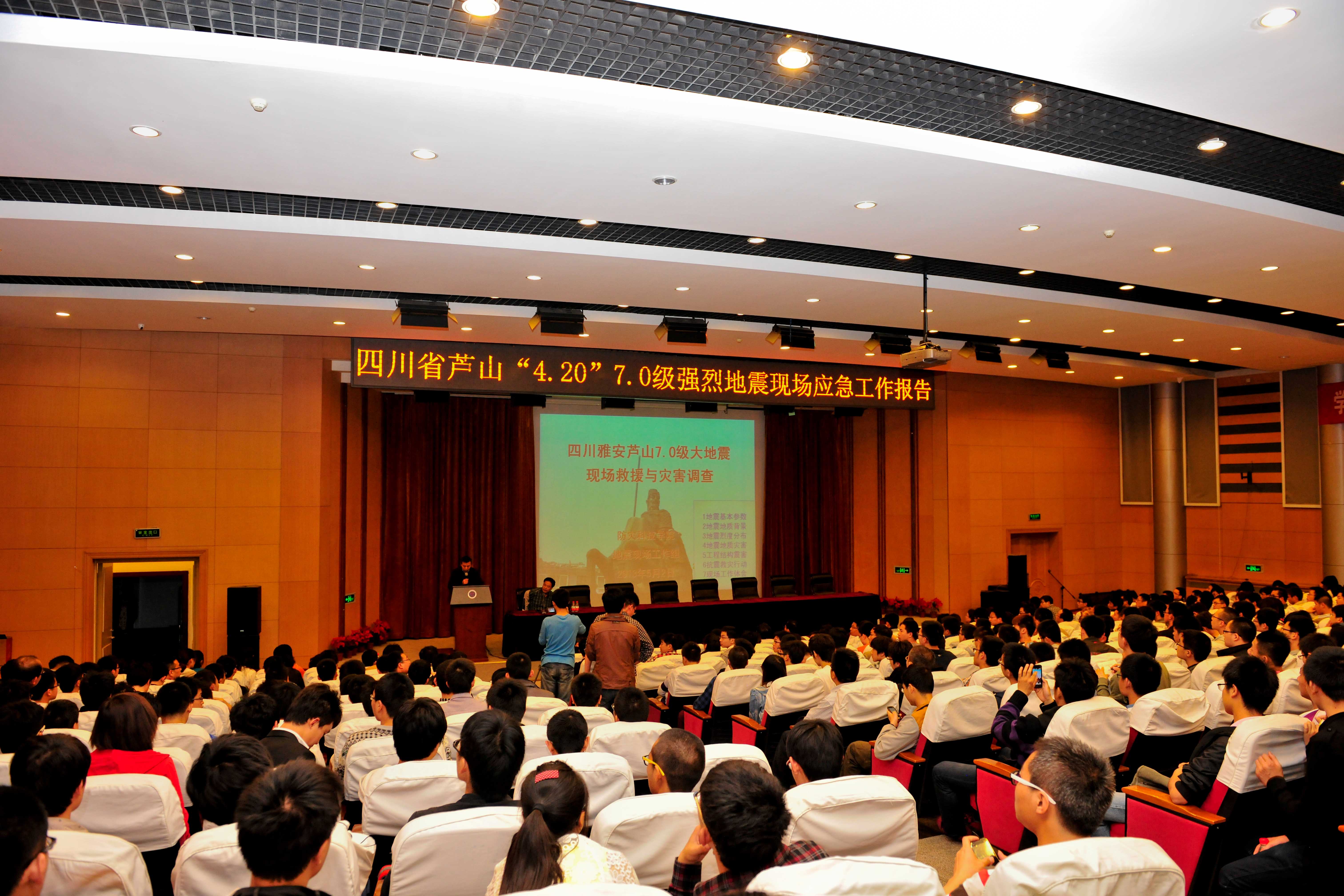 5月2日晚,四川省芦山“4·20”7.0级强烈地震现场应急工作报告会在图书馆报告厅举行。院长薄景山教授作了题为《四川雅安芦山7.0级大地震现场救援与灾害调查》的报告。450多名师生参加此次报告会,报告厅内座无虚席,现场气氛热烈。