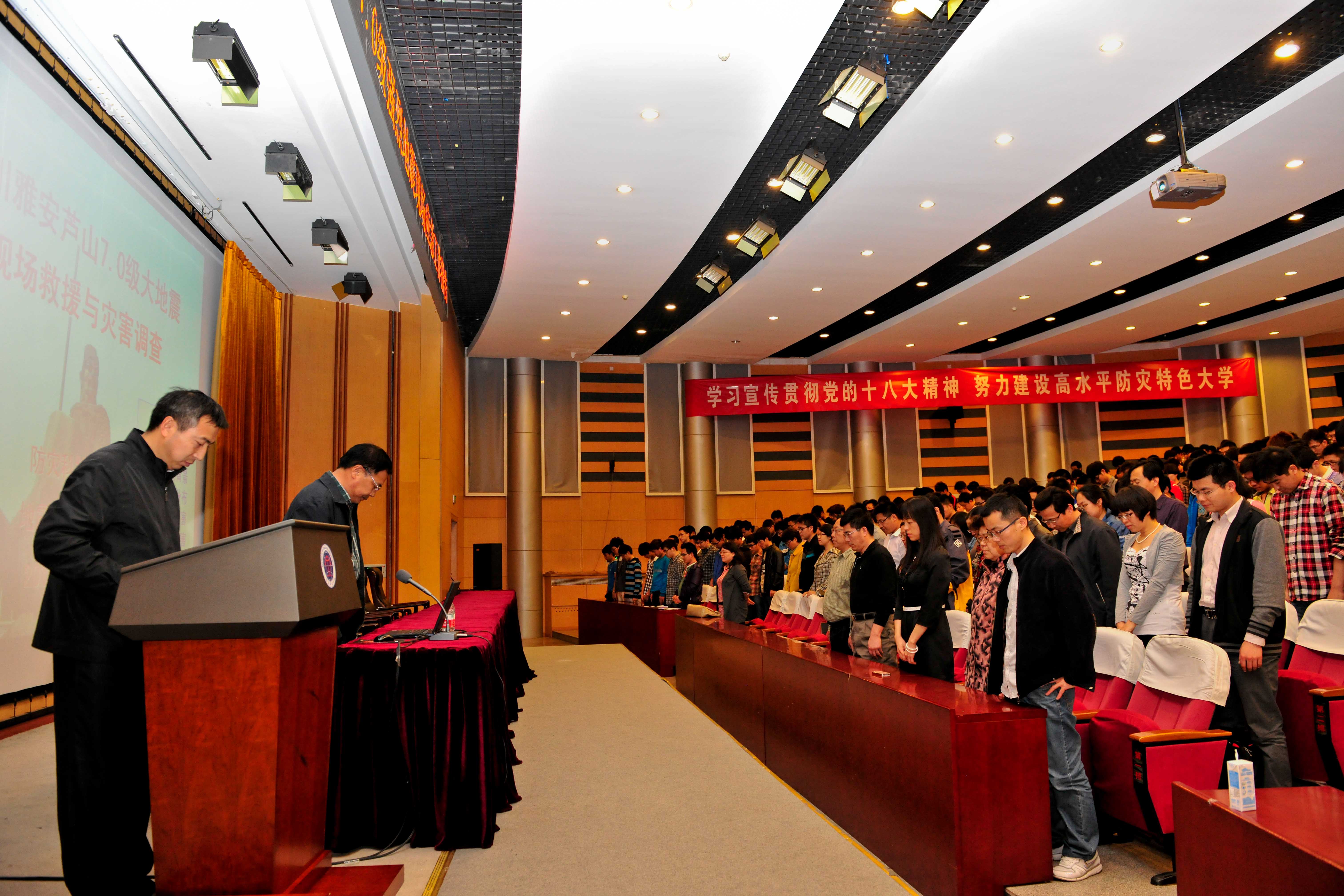 此次报告是我院关于四川芦山地震的首场报告,同时也拉开了我院第五个防灾减灾周系列活动的序幕。报告会开始之前,与会全体师生为四川省芦山“4·20”7.0级强烈地震遇难同胞默哀。